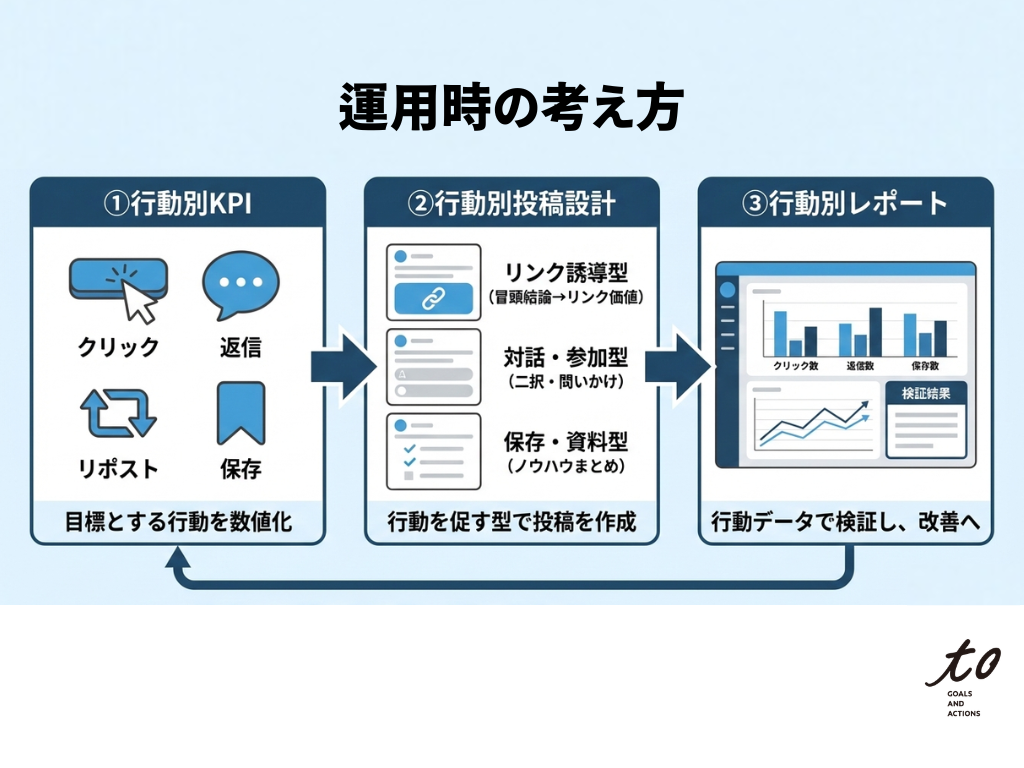 行動別KPI+行動が起きる投稿設計+検証ループ に寄せるほど強くなる